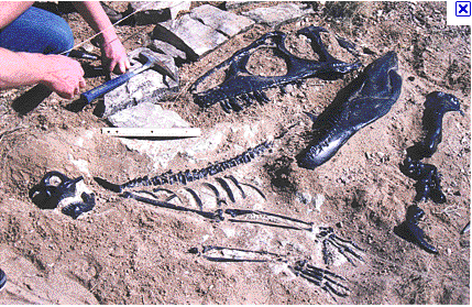 Dinosaurs lived on earth for 160 millons years ago. Suddenly all the Dinosaurs extinct 65 millons years ago. The bodies of some Dinosaurs were covered by sand and dirt, after they were extinct. The bones were hidden for millon's of years, water and minerals seep through the sand and slowly turned the bones into stones. Heavy wind and rain wash away part of the sand and dirt. Then part of the dinosaur can be seen. A scientist than finds the fossil of a Dinosaur and carefully, digs it out of the stone to take to a museum and study.